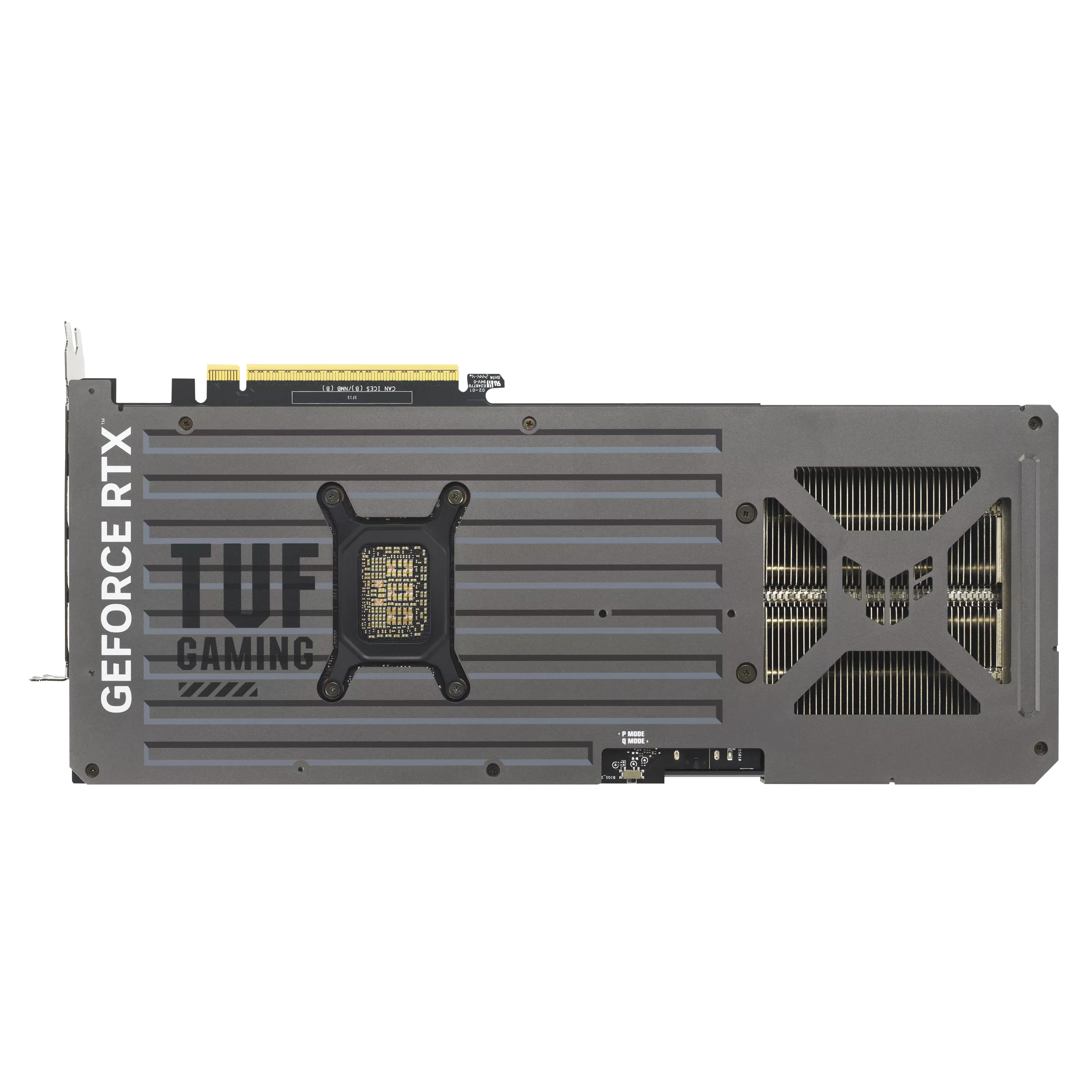 Cooling is engineered around triple Axial-tech fans and an ASUS MaxContact heat spreader approach, designed to maximize thermal transfer from the GPU into the heatsink for lower operating temperatures under load. A premium phase-change GPU thermal pad helps fill micro-gaps during operation to improve thermal conductivity and support long-term performance stability. The fans include 0dB technology, stopping under light workloads for quieter desktop use, and ramping intelligently when temperatures rise for balanced acoustics during gaming. TUF durability features include military-grade components, a protective PCB coating to help resist moisture and debris-related issues, and a vented metal exoskeleton with an aluminum backplate to reduce PCB flex. Dual BIOS lets you switch between Quiet and Performance modes to prioritize acoustics or maximum cooling response.