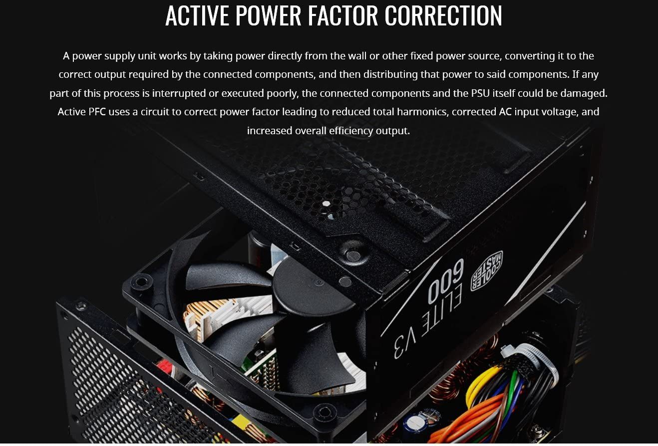 BrandCooler MasterOutput Wattage600 WattsForm FactorATXWattage600 wattsItem Dimensions LxWxH8.39 x 3.78 x 7.68 inchesItem Weight3.84 PoundsFan Size120 Millimeters