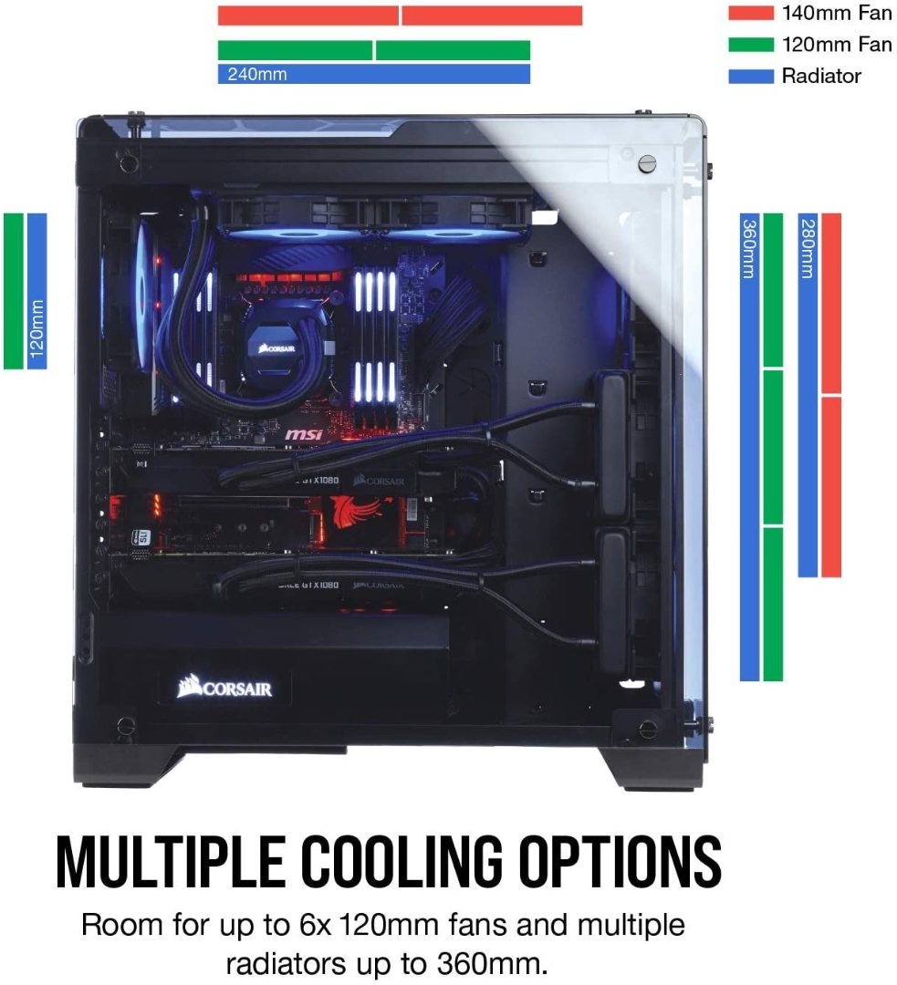 Corsair Crystal 570X RGB Mid-Tower Case, 3 RGB Fans, Tempered Glass – Black