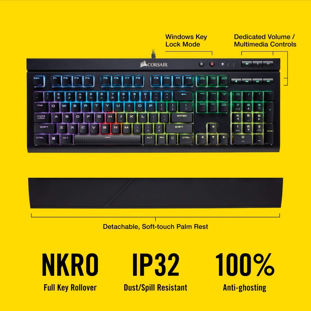Be the first to review “Corsair K68 RGB Mechanical Gaming Keyboard, Backlit RGB LED, Dust and Spill Resistant – Linear & Quiet – Cherry MX Red” Cancel reply