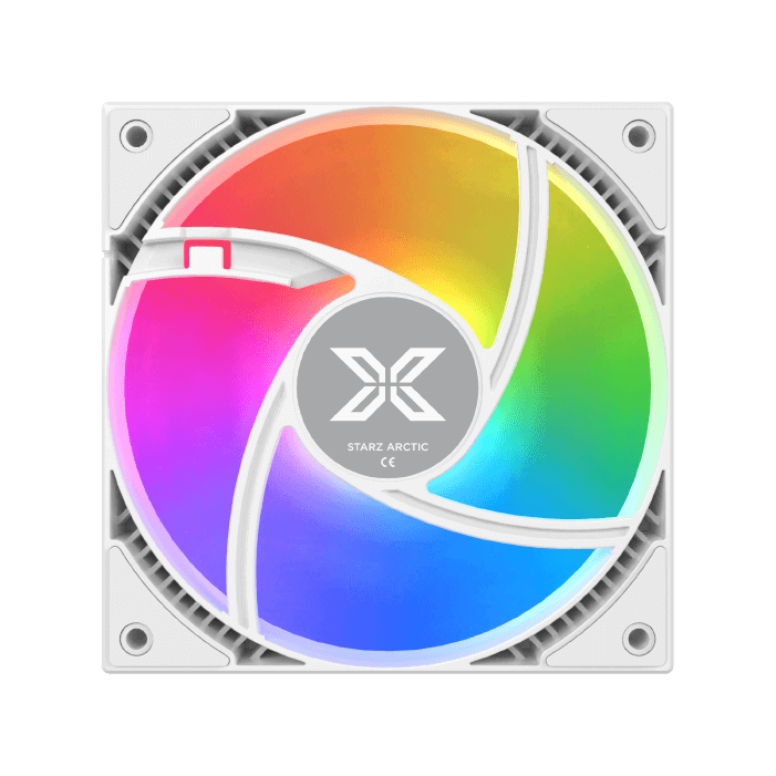 SPECIFICATIONSPRODUCT NAMESTARZ ARCTICDIMENSION120X120X25MMBEARING TYPELONG LIFE HYDRO BEARINGLED TYPEADDRESSABLE RGBLED DISPLAYCENTER HUBFAN MAX RPM1200 RPM (±10%)OPERATING VOLTAGEDC 5.0V~13.8VPOWER DRAW – LED5V 0.8A 4WPOWER DRAW – FAN12V 0.18A 2.16WNOISE<19.80 DBAAIRFLOW40.60 CFMAIR PRESSURE0.539 MMH2OLIFE SPAN30,000 HOURSFAN INCLUDED3 FAN PACKACCESSORYARGB FAN CONTROL BOXREMOTE CONTROLLERFAN…