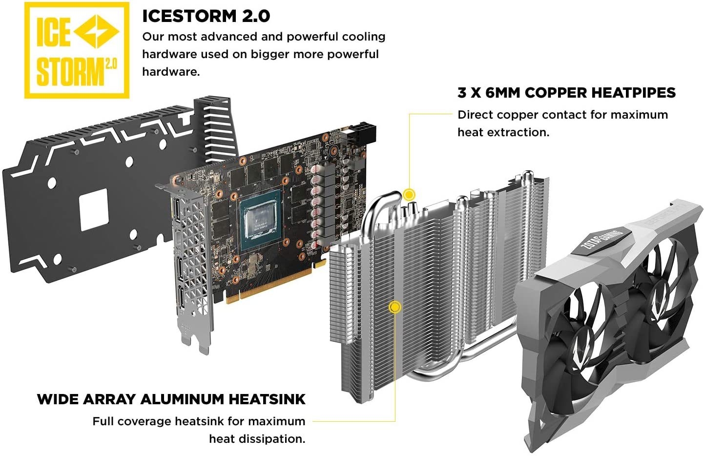 BrandZOTACGraphics CoprocessorNVIDIA GeForce RTX 2060Video Output InterfaceDisplayPort, HDMIChipset BrandNVIDIAGraphics RAM TypeGDDR6Graphics Ram Size6 GBMemory Speed14000 MHzGraphics Card InterfacePCI-EFan Count2